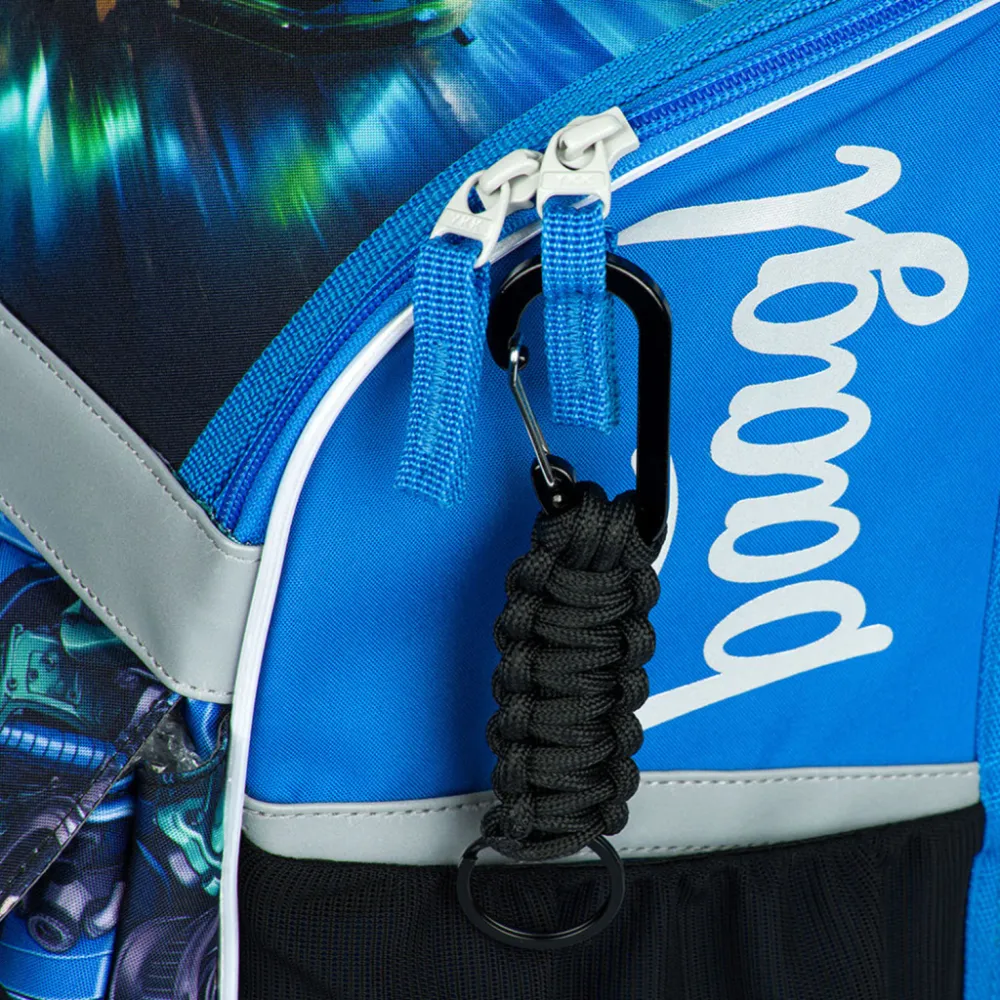• Uvnitř aktovky je průhledná kapsa na rozvrh a vnitřní organizér umožňující rovnoměrné rozložení hmotnosti, doplněný gumičkou pro fixaci.