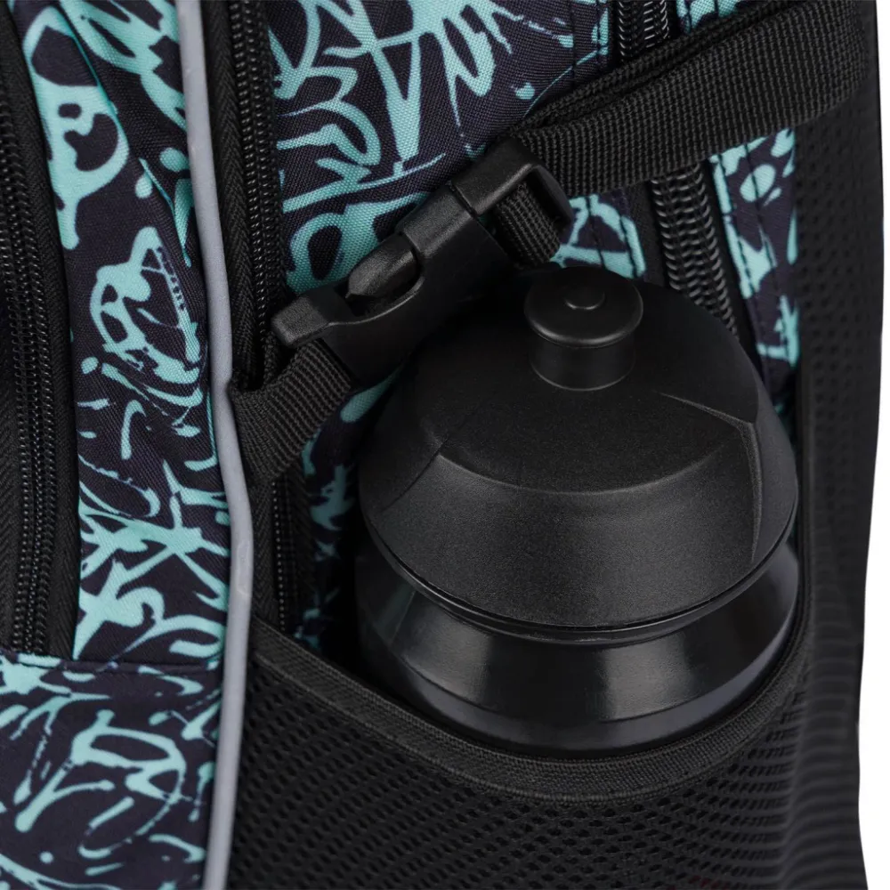 • Boční kapsy z pevné síťoviny na láhví na pití či jiné drobnosti.