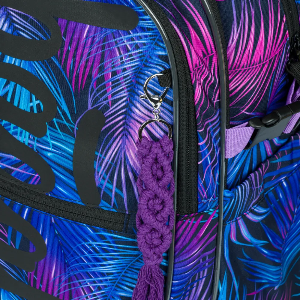 Školní batoh Core Palm s motivem palmových listů je vhodný pro děti od třetí třídy ZŠ. Díky anatomicky tvarovaným zádům a systému plně nastavitelných popruhů jej lze přizpůsobit aktuální postavě dítěte.