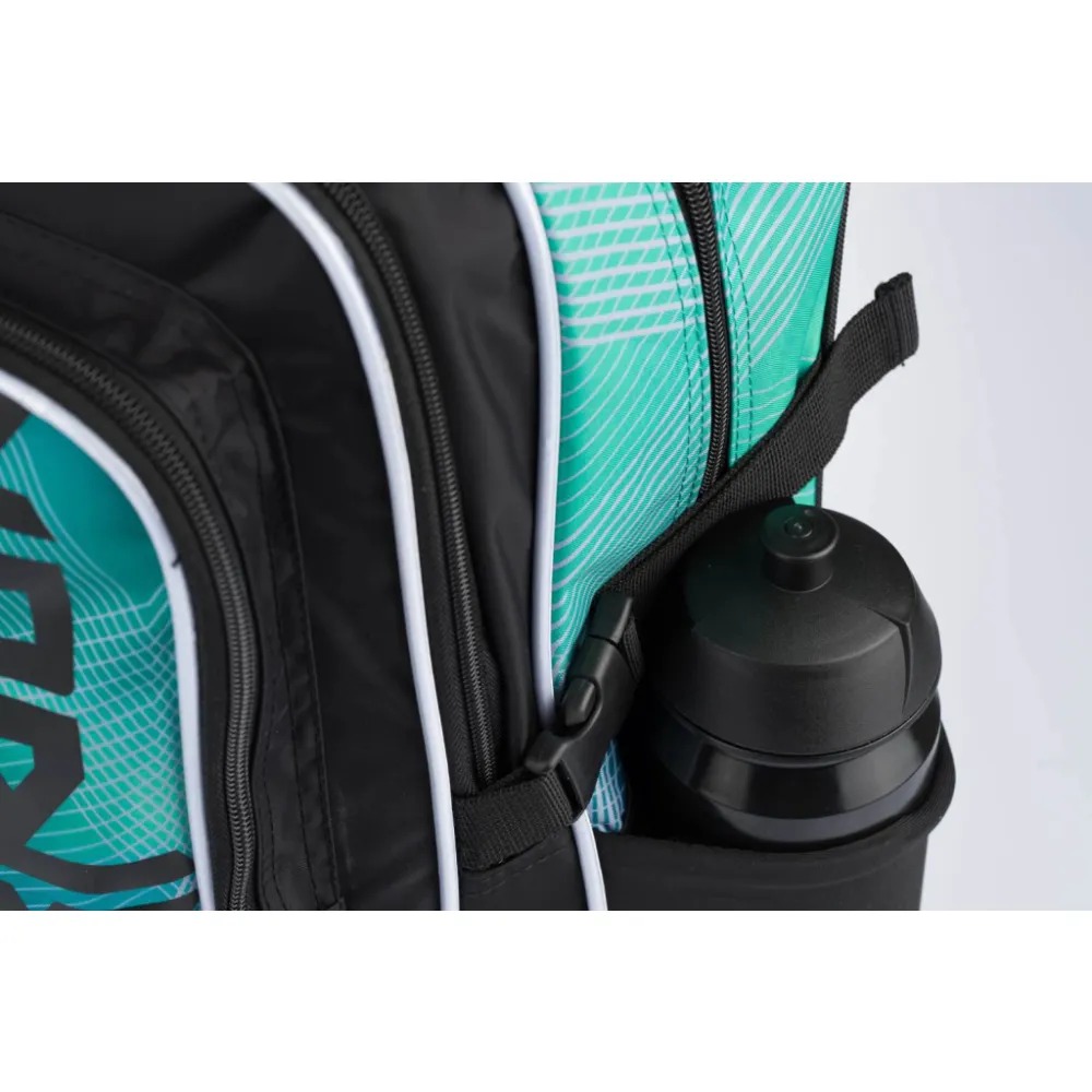 • Boční kapsy z elastického materiálu, které jsou vhodné pro jednu z našich láhví na pití.