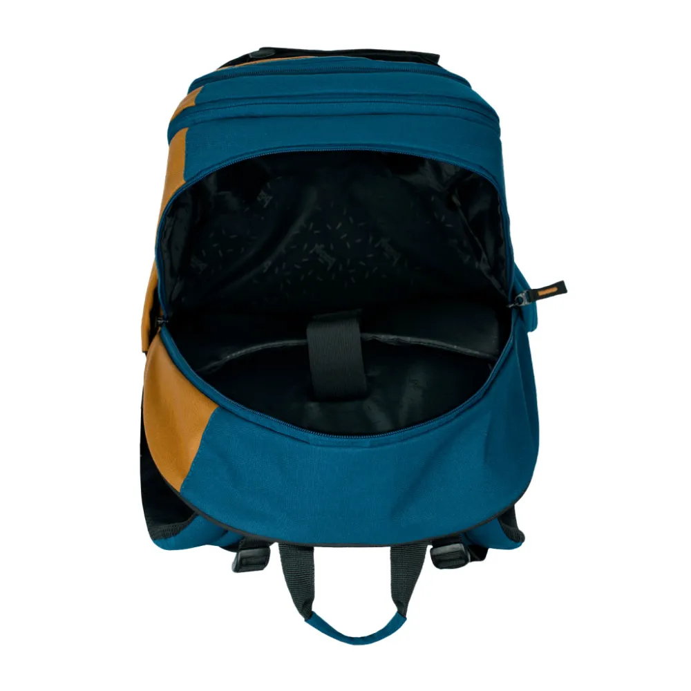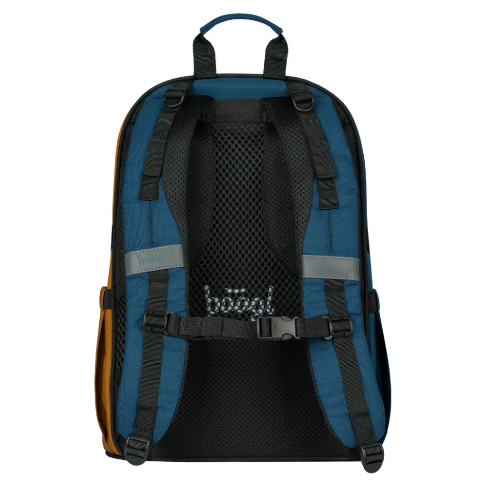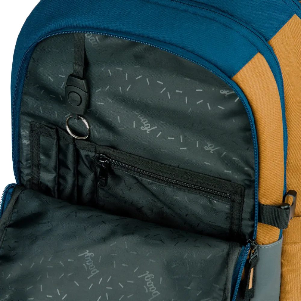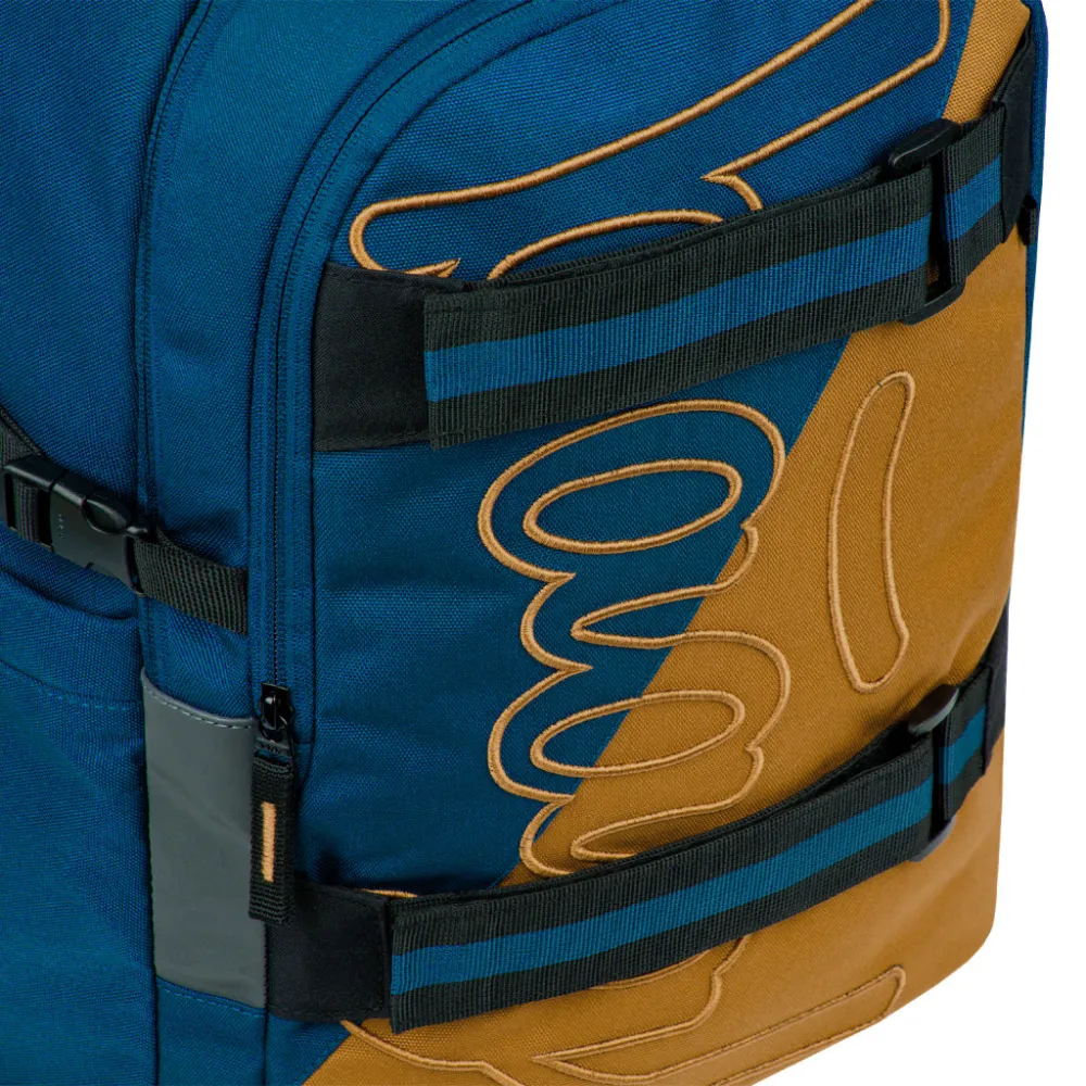 Karamelovo–modrý batoh Skate s logem BAAGL, anatomicky tvarovaným zádovým systémem a popruhy na uchycení skateboardu je ideální pro děti od 3. třídy ZŠ..