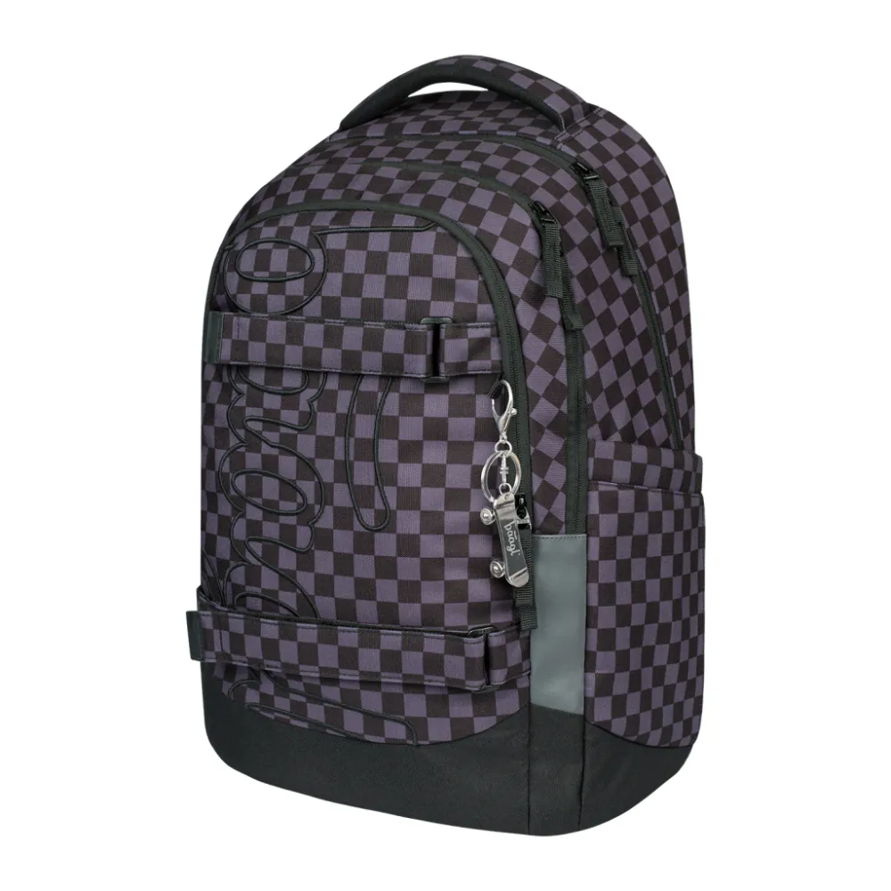 Trendy batoh Skate Max SKA s popruhy pro uchycení skateboardu lze díky posuvnému zádovému systému nastavit až na čtyři různé velikosti.