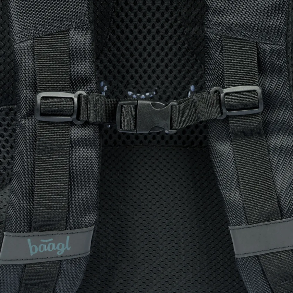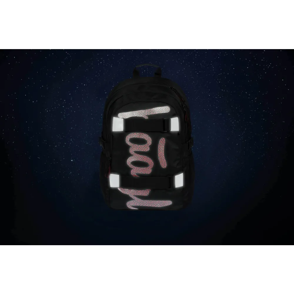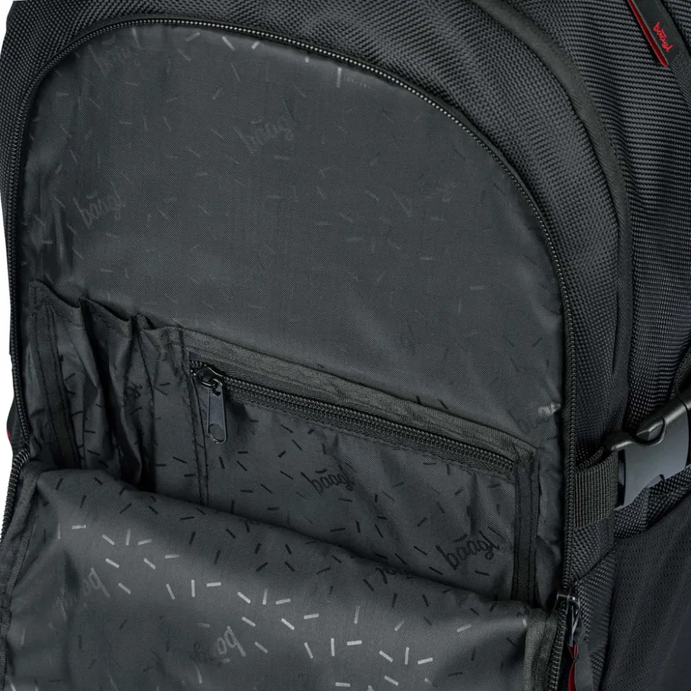 Černý batoh Skate Red s minimalistickým červeným potiskem loga BAAGL, vhodný od 3. třídy ZŠ.