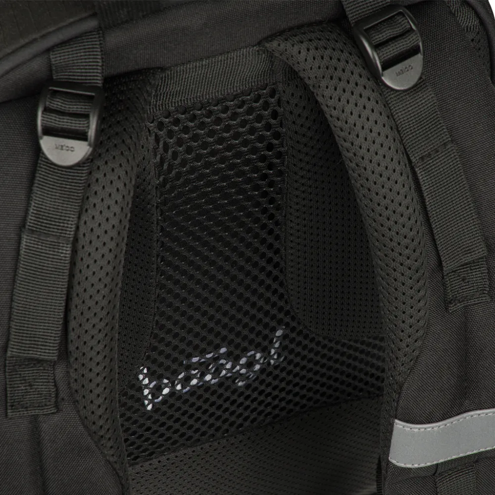 • Batoh z recyklovaného, voděodolného materiálu je opatřen řadou reflexních prvků pro maximální bezpečnost dítěte i za snížené viditelnosti.
