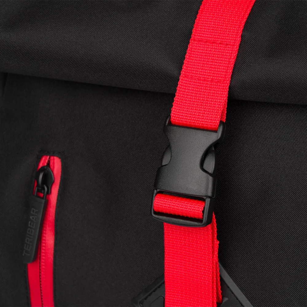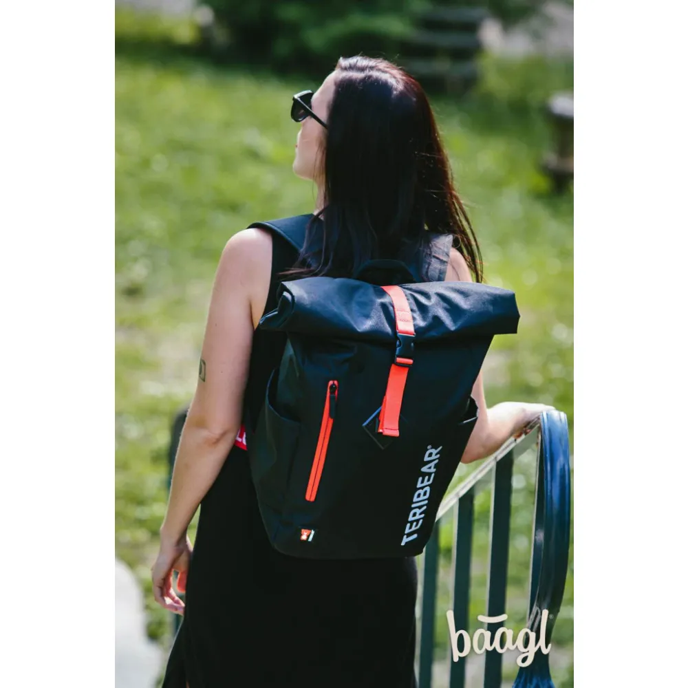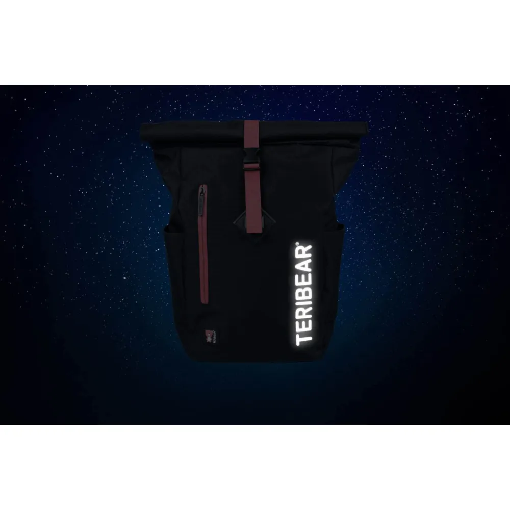 • Lifestylový roll-top batoh ušitý z pevného nepromokavého materiálu, doplněný o reflexní logo TERIBEAR.