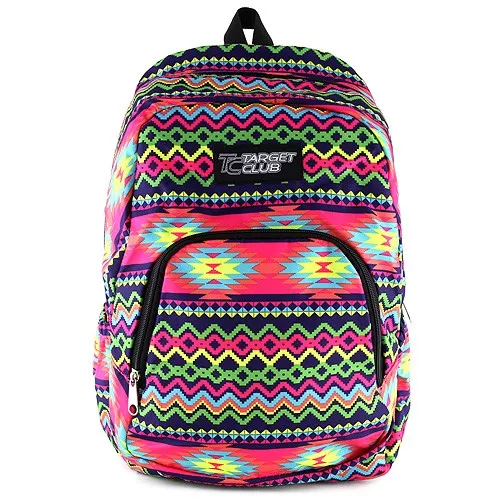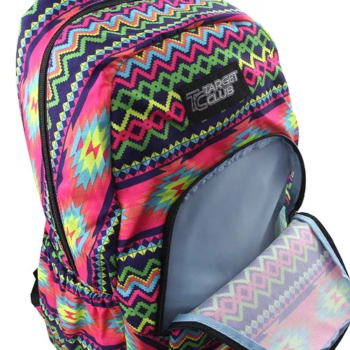 Batoh na volný čas Target, barevné ornamenty. Textilní batoh na volný čas značky Target, s barevnými ornamenty, je vhodný pro volnočasové aktivity či na cesty.
