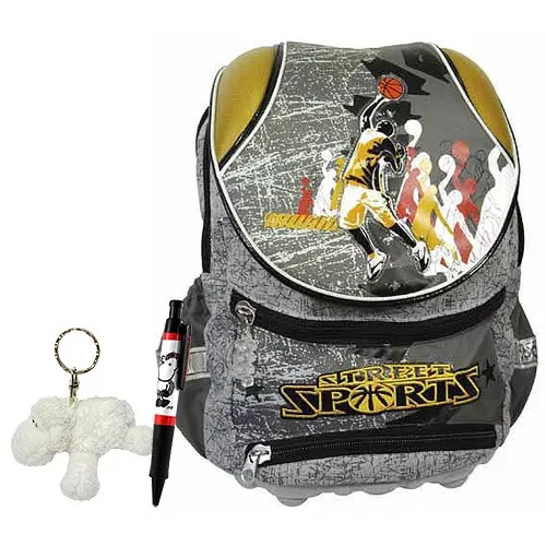 Batoh školní Cool 3-dílný set, basketbal. Třídílná sada - batoh Cool s motivem basketbalu z kolekce COOL, v barvě šedé. Sada dále obsahuje kuličkové pero a plyšovou klíčenku s motivem Sheepworld (svět oveček).