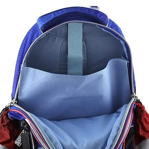 Perfektně zpracovaný voděodolný batoh s vnitřním prostorem dvoukomorovým, kde druhá kapsa je oddělena přepážkou, bezpečně uzavíratelný na zip. Prostorná přední kapsa s praktickým organizérem a plastovou karabinkou na klíče. Přední stranu zdobí plastová nášivka ježka a nápis Sonic. Anatomicky tvarovaná záda s měkkou vnější vložkou a vnitřní kovovou výztuhou udržují stálý tvar batohu. Kapsy na láhev po obou stranách batohu. Nastavitelné a 6cm široké měkké ramenní popruhy pro maximální pohodlí. Reflexní prvky zajistí bezpečnost dítěte v silničním provozu. Anatomický systém zajistí prodyšnost. Vyztužené dno se čtyřmi kulatými podpěrami. Velké měkké poutko přizpůsobené dětské ruce a menší poutko na suchý zip.Parádní batoh, který udělá velkou radost všem mladším školákům! Vhodný pro 1. a 2. třídu základní školy.