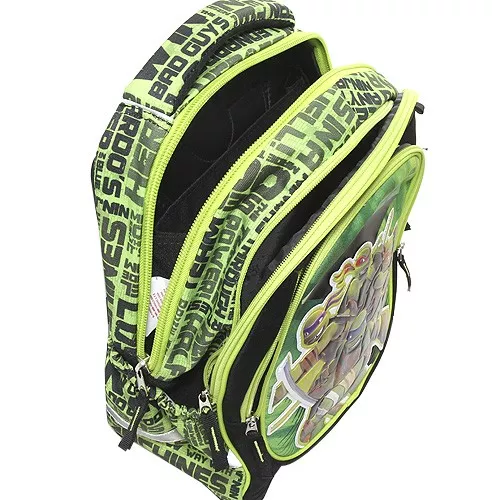 Perfektně zpracovaný batoh s vnitřním prostorem dvoukomorovým, kde druhá kapsa je oddělena přepážkou, bezpečně uzavíratelný na zip. Prostorná přední kapsa s praktickým organizérem oddělena přepážkou. Přední stranu zdobí nápis Turtles a nášivka želváků Ninja! Anatomicky tvarovaná záda s měkkou vnější vložkou a vnitřní kovovou výztuhou udržují stálý tvar batohu. Kapsy na láhev po obou stranách batohu. Nastavitelné a široké měkké ramenní popruhy pro maximální pohodlí. Reflexní prvky zajistí bezpečnost dítěte v silničním provozu. Anatomický systém zajistí prodyšnost. Vyztužené dno se čtyřmi kulatými podpěrami. Velké měkké poutko přizpůsobené dětské ruce a menší poutko na suchý zip. Parádní batoh, který udělá velkou radost všem mladším školákům! Vhodný pro 1. a 2. třídu základní školy.
