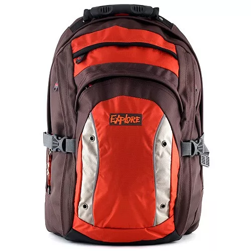 Batoh studentský Explore, hnědo-oranžový, 46 x 30 x 18cm. Kvalitní dvoukomorový batoh s vnitřním prostorem formátu A4 umožňuje uložit i velké sešity a učebnice. Vhodný jako školní batoh pro studenty nebo na cesty.