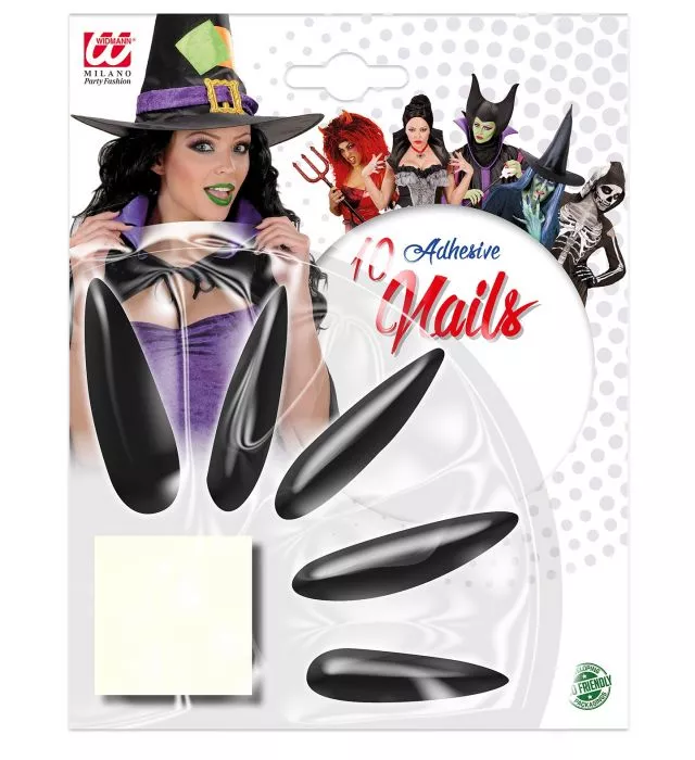 Čarodějnické nehty černé dlouhé W 3060 W. Sada 10 dlouhých čarodějnických nalepovacích nehtů (včetně lepítek). Pořádná čarodějnice musí mít pořádné čarodějnické nehty!
