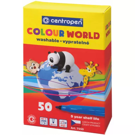 Centropen 7550 popisovač na papír žlutý. Popisovače s ventilačním bezpečnostním chránítkem a trojúhelníkovou úchopovou částí, odpovídající nejnovějším trendům v ergonomii psaní a kreslení. Jsou vyrobeny z polypropylenu a odolávají vyschnutí minimálně 3 roky. Válcové hroty o průměru 2 mm, odolné proti zatlačení, vypratelný inkoust.