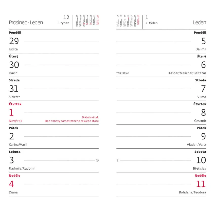 Kalendárium: 14denní české jmennéRozměr: 85 x 154 mm
