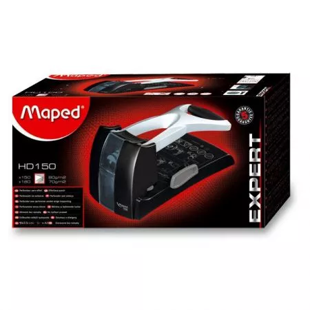 Děrovačka Maped Heavy Duty HD 150 na 150 listů. Výkonná velkokapacitní děrovačka, najednou lze děrovat až 150 listů 80 g papíru. U razidel garantováno 20 000 perforací. Balení obsahuje 4 náhradní disky a návod k použití. Záruka 5 let. V nabídce i náhradní nože.