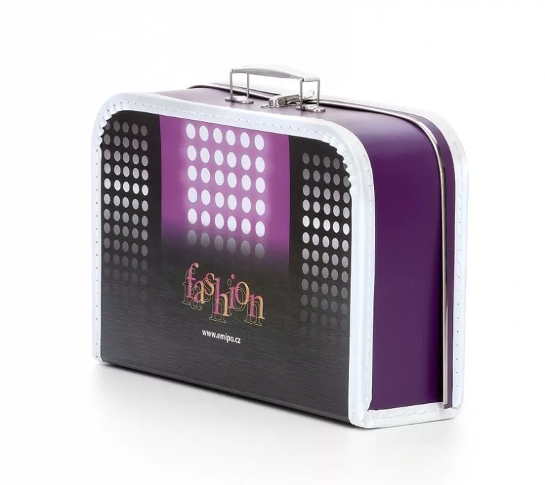 Dětský kufřík je vhodný doplněk nejen začínajícího školáka, ale i chlapců a dívek předškolního věku. Je jednoduchý, lehký, vyroben z lepenky vyráběné z recyklovaného papíru, povrchově upravené vodou ředitelným lakem nebo potištěným papírem. Na své čelní straně má celoplošný barevný obrázek a uzavírá se kovovým zámečkem. Určen je k nošení v ruce. Má velikost š.350 x v.230 x h.105mm. Jeho hmotnost je 0,380 kg.