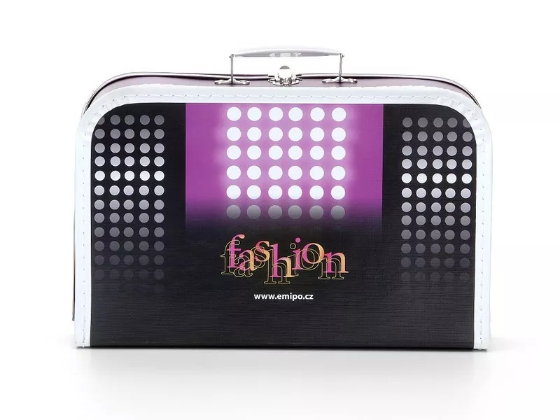 Dětský kufřík je vhodný doplněk nejen začínajícího školáka, ale i chlapců a dívek předškolního věku. Je jednoduchý, lehký, vyroben z lepenky vyráběné z recyklovaného papíru, povrchově upravené vodou ředitelným lakem nebo potištěným papírem. Na své čelní straně má celoplošný barevný obrázek a uzavírá se kovovým zámečkem. Určen je k nošení v ruce. Má velikost š.350 x v.230 x h.105mm. Jeho hmotnost je 0,380 kg.