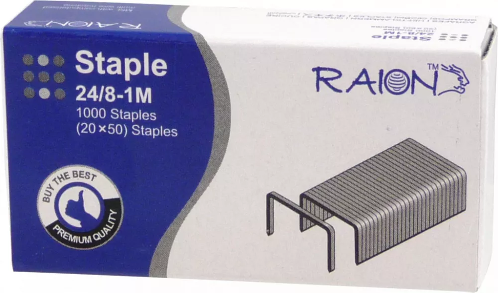 Drátky do sešívačky 24/8 Raion 1000ks. Krabička obsahuje 1000 kusů drátků do sešívaček (20x50). Drátky z kvalitní oceli jsou vyrobeny precizní technologií.
