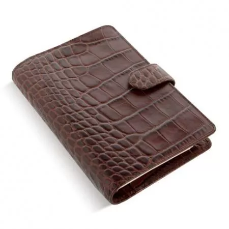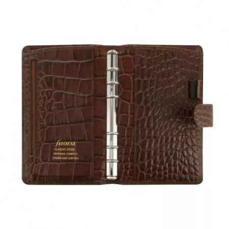 Filofax, Diář Classic Croc, osobní compact, kaštanová. Luxusní diář vyrobený z prvotřídní jemné telecí kůže s krokodýlí texturou. Díky velké vnitřní kapse ho můžete využít také jako peněženku.