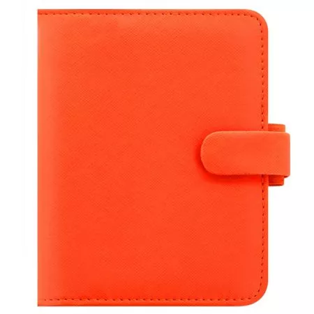 Filofax, Diář Saffiano, Kapesní oranžová 2020. Diář s jemnou strukturou na povrchu desek, která dodává jeho barvě dvojtónový efekt. Vybírat můžete z široké palety zářivých a módních barev.
