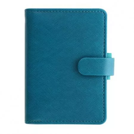 Filofax, Diář Saffiano, mini, akvamarínová. Jednoduchý a sofistikovaný design diáře Saffiano velikosti Mini v akvamarínové barvě je umocněný materiálem desek, který je velice příjemný na dotek, a má navíc jemnou strukturu na povrchu.