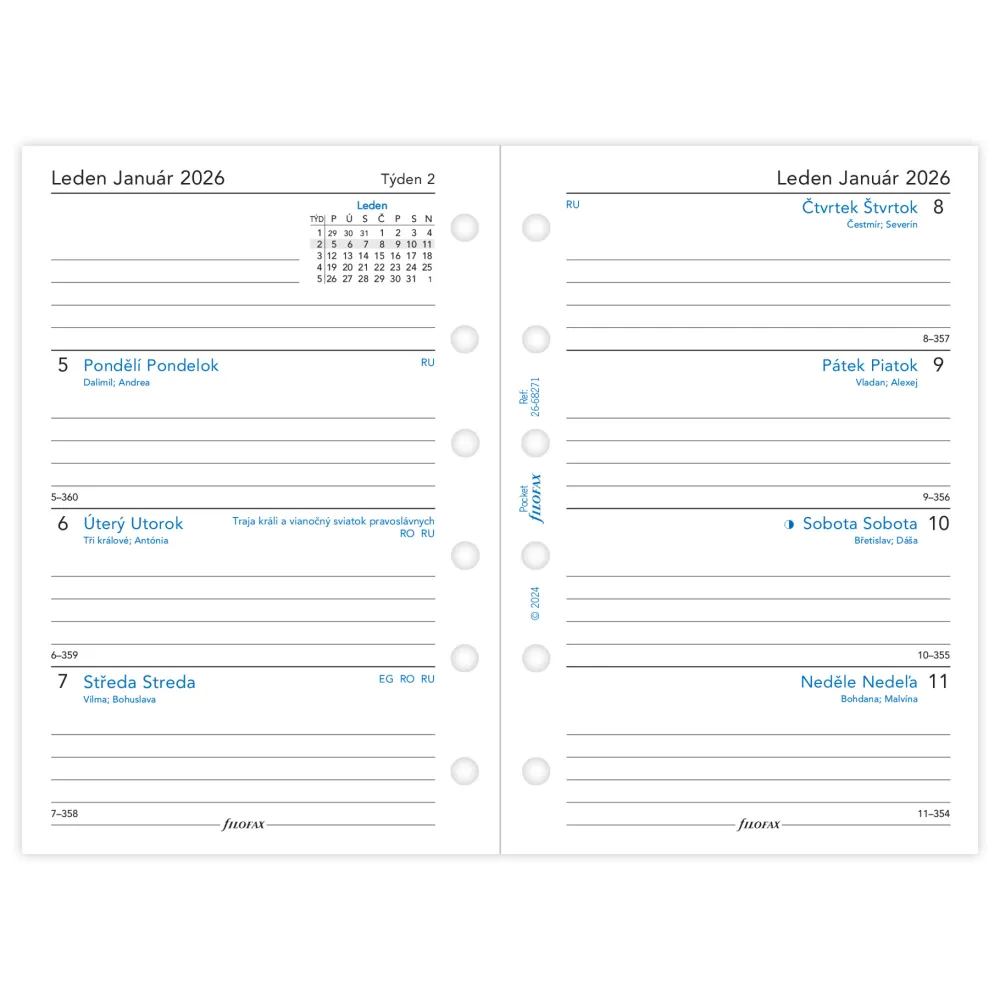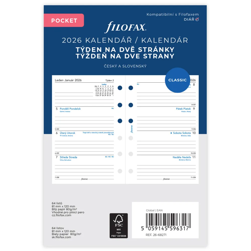 kalendář 2026 kapesní, týden/2 str, linky, ČJ+SJ