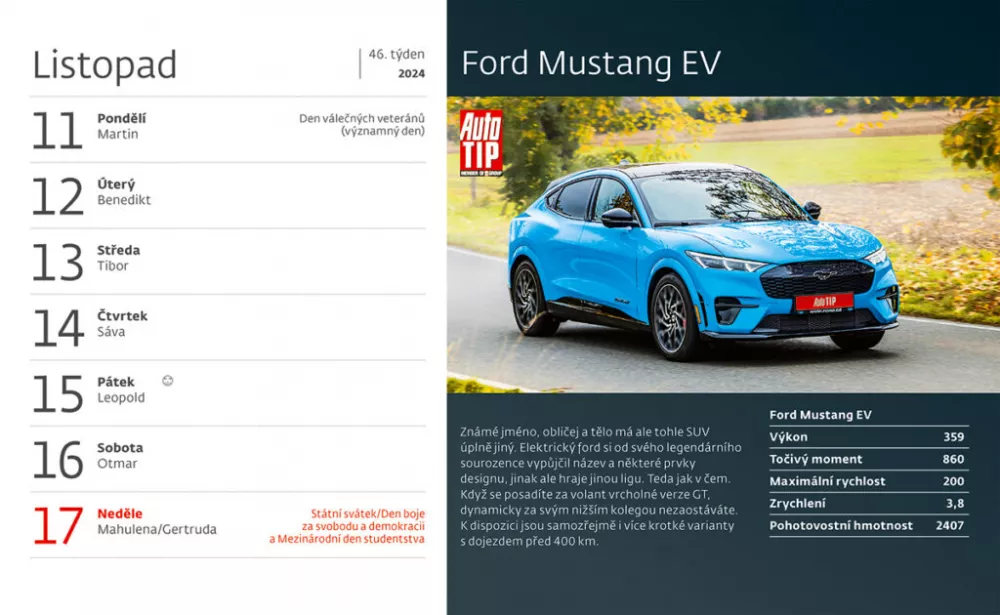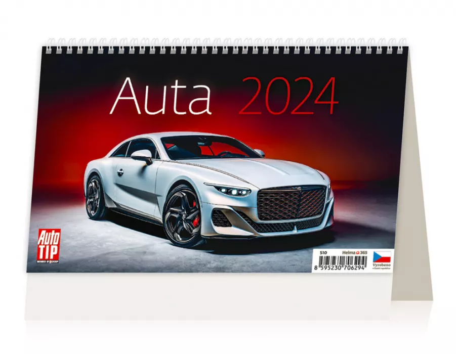 Kalendář Auta (S10-24). Formát kalendáře: 22,6 x 13,9 cm. Kalendárium: české týdenní řádkové.