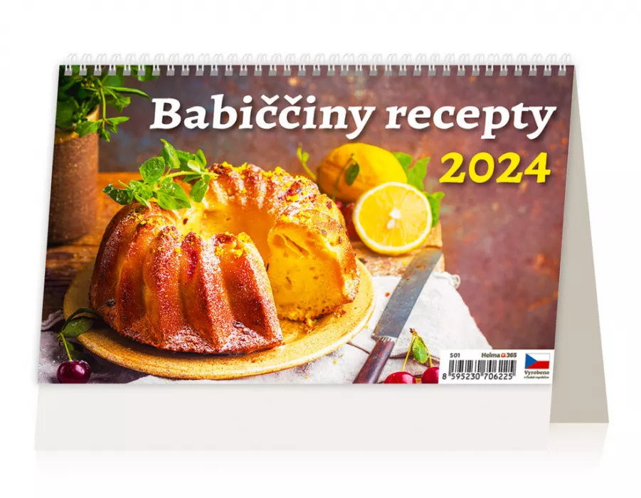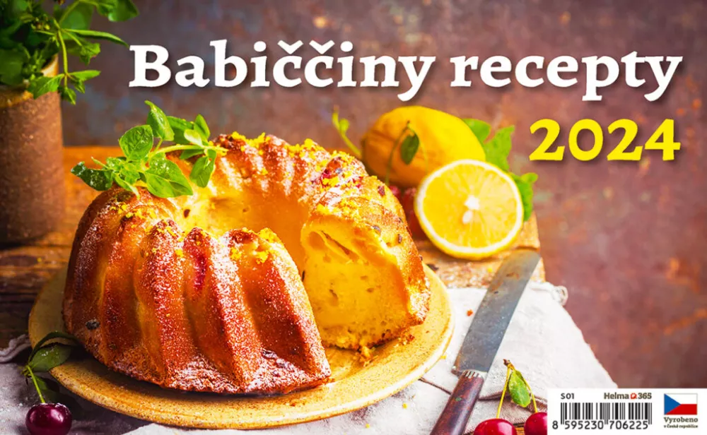 Kalendář Babiččiny recepty (S01-24). Formát kalendáře: 22,6 x 13,9 cm. Kalendárium: české týdenní řádkové.