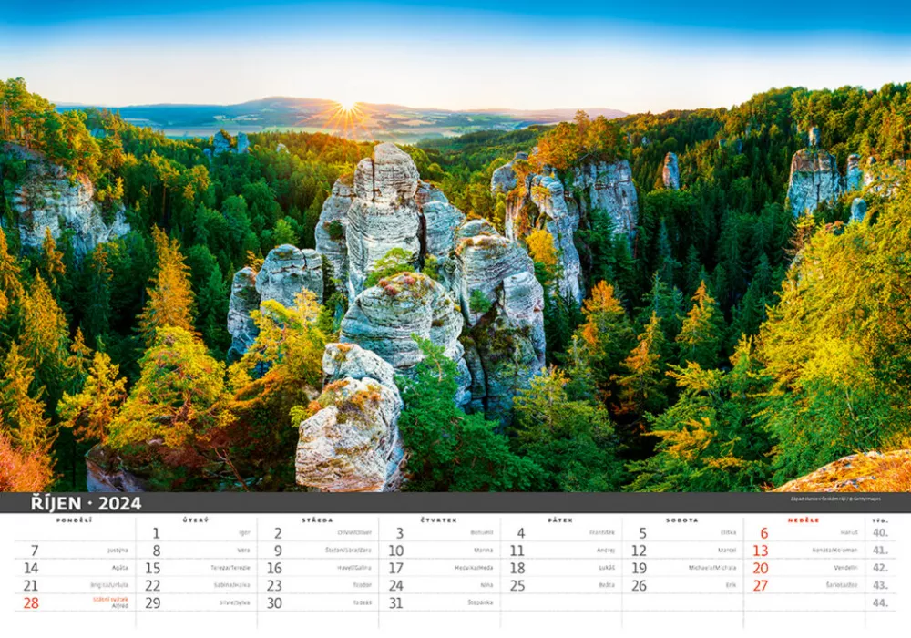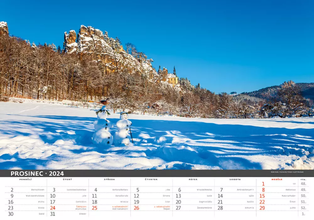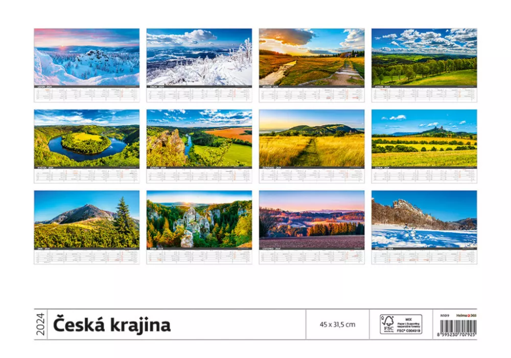 Kalendář Česká krajina (N109-24). Formát kalendáře: 45 x 31,5 cm. Kalendárium: české měsíční. Rozsah kalendáře: 14 listů.