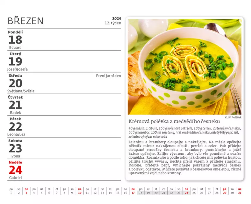 Kalendář Česká kuchyně (SM01-24). Formát kalendáře: 17,1 x 13,9 cm. Kalendárium: české týdenní řádkové.