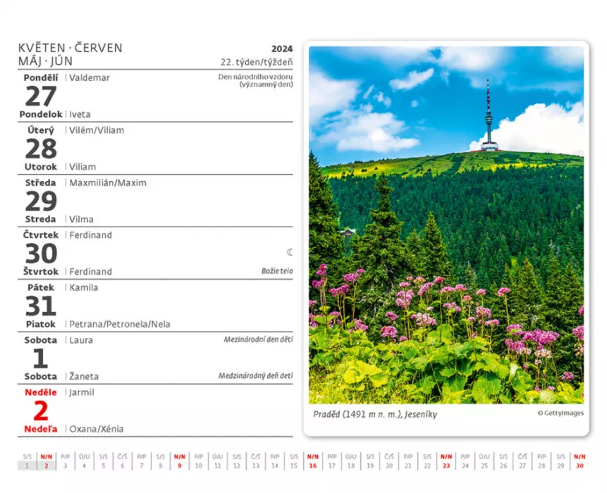 Kalendář České a slovenské hory (SM09-24), Formát kalendáře: 17,1 x 13,9 cm. Kalendárium: české/slovenské týdenní řádkové.