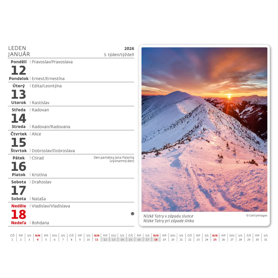 Stolní kalendář MiniMax České a slovenské hory 2026