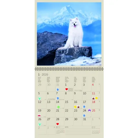 Nástěnný kalendář Dogs (LP02-26). Formát kalendáře: 30 x 30 cm (30 x 60 cm) 14 listů + samolepky 12 fotografií s měsíčním kalendáriem Kalendárium: měsíční mezinárodní se svátky 40 států Kalendárium v šesti jazycích (GB, D, F, I, NL, DK) Vazba: Twin-wire (se spirálou) Super tuhá lepenka Více než 300 barevných ...