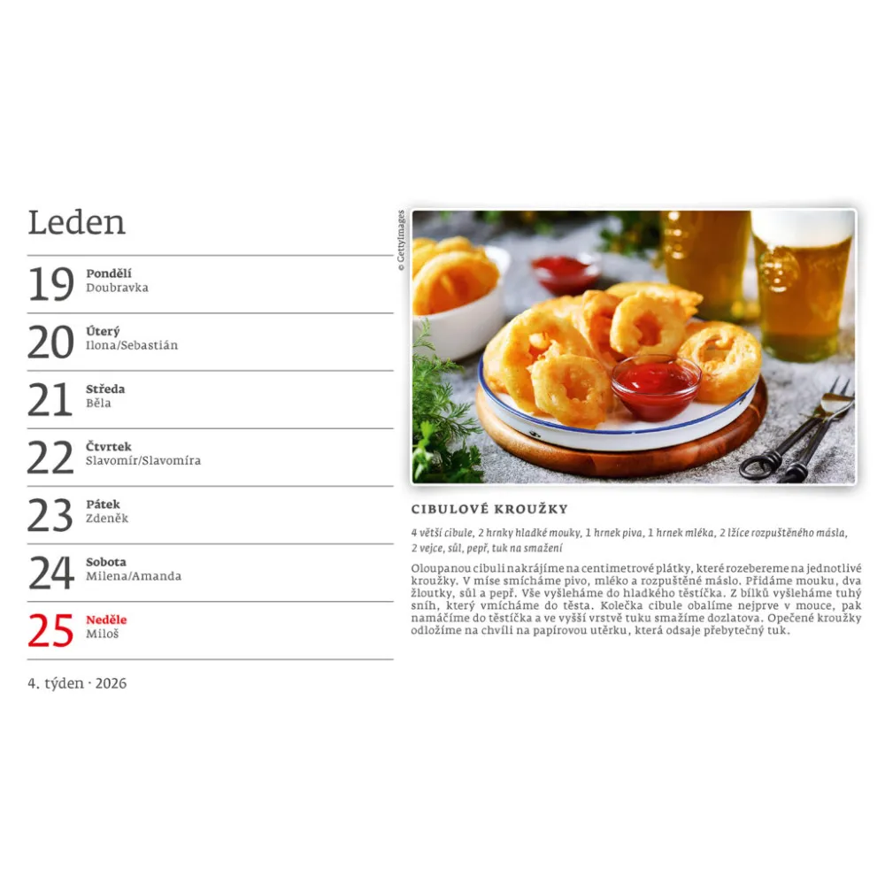Stolní kalendář Hrníčková kuchařka (S08-26). Formát kalendáře: 22,6 x 13,9 cm Kalendárium: české týdenní řádkové Počet stran kalendáře: 58 + 2 Stojánek: se zámkem Prostor pro přítisk: 22,6 x 3 cmFormát kalendáře: 22,6 x 13,9 cm Kalendárium: české týdenní řádkové Počet stran kalendáře: 58 + 2 Stojánek: ...