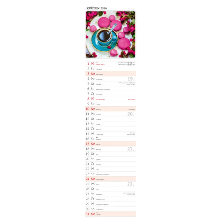 Vazba: Twin-wire (se spirálou)Formát kalendáře: 12 x 48 cm