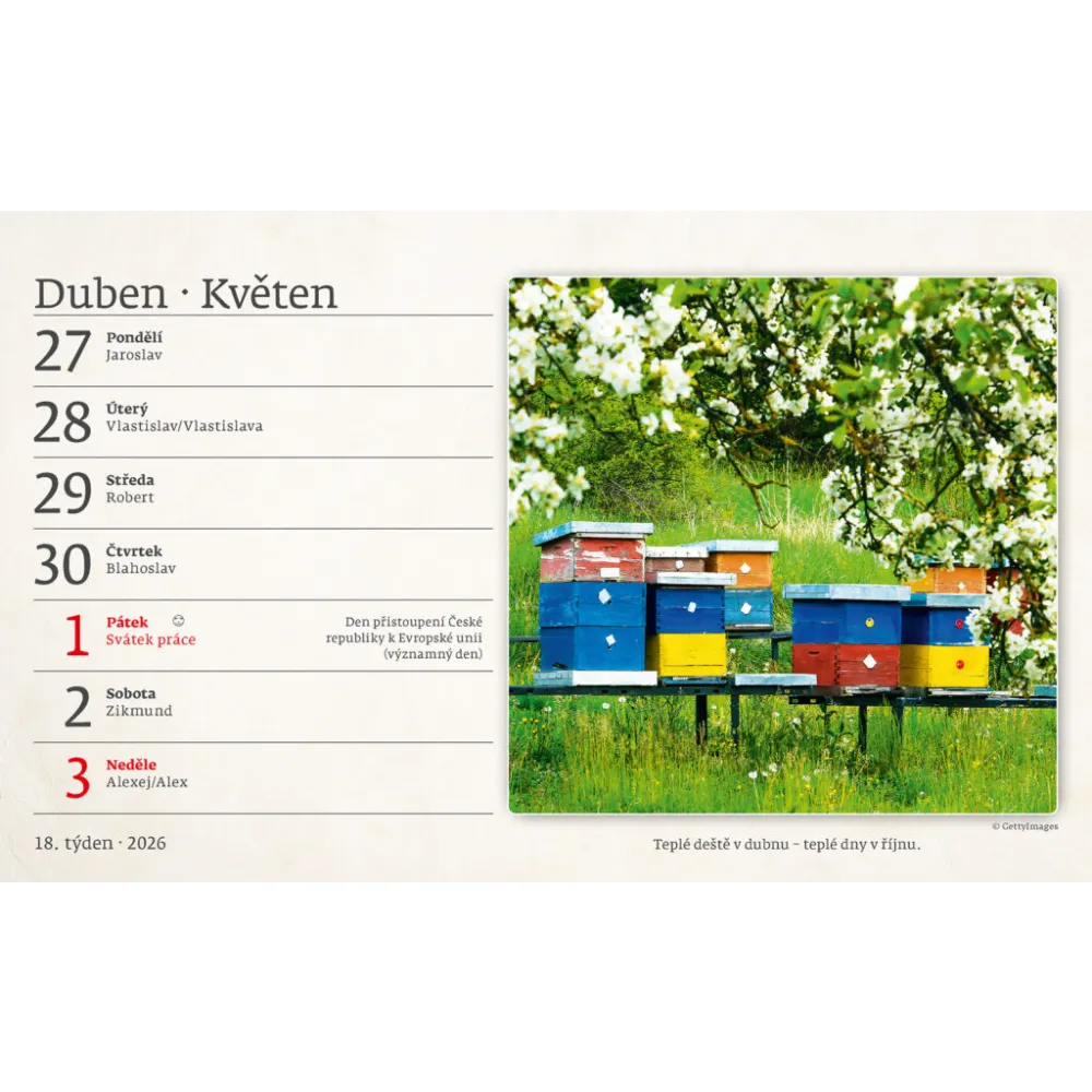 + lidové pranostikyFormát kalendáře: 22,6 x 13,9 cm