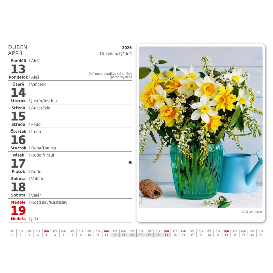 Kalendárium: české/slovenské týdenní řádkové