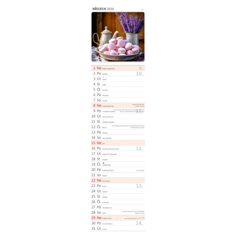 Vazba: Twin-wire (se spirálou)Formát kalendáře: 12 x 48 cm