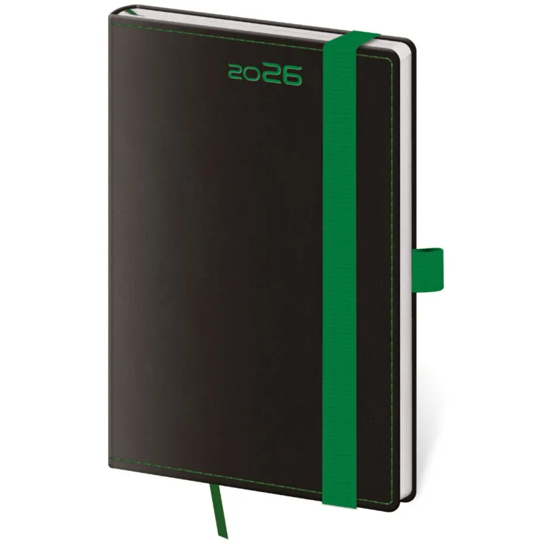 Detailní popis: Kapesní diář Black Green s poutkem (DB436-3-26)