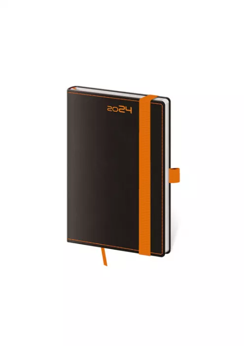 Kapesní diář Black Orange s poutkem (DB436-5-24). Formát diáře: 90 x 140 mm. Rozsah diáře: 128 stran. Kalendárium: týdenní kapesní, poutko na propisku. Formát diáře: 90 x 140 mm. Rozsah diáře: 128 stran. Kalendárium: týdenní.
