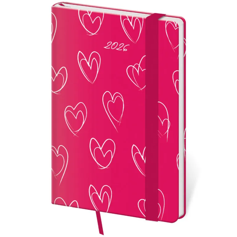 Kapesní diář Vario Hearts s gumičkou (DV436-13-26)