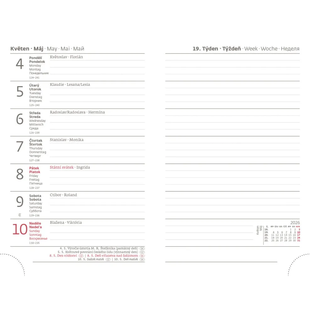 Kalendárium: týdenní kapesníFormát diáře: 90 x 140 mm
