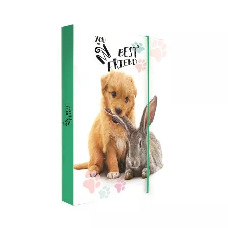Karton P+P Box na sešity A4 Jumbo Pets 5-77920. Oblíbený box na sešity ve formátu A4 Jumbo. Nezbytná součást vybavení každého školáka na uložení sešitů, papírů a dalších školních pomůcek. Odolný materiál - lamino, chrání proti poškození. Zavírání na gumičku. Šířka hřbetu 4 cm.