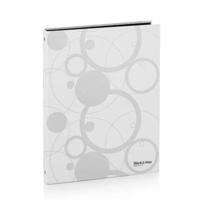 Karton P+P KARIS A5 lamino Black and White bílá 7-031. Blok má 4-kroužkovou kovovou mechanikou a náplň 100 linkovaných listů. Možnost dokoupení náhradní náplně.
