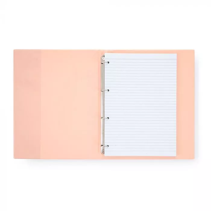 Karton P+P KARIS A5 plast PASTELINI meruňková 5-438. Blok v moderních pastelových barvách se 4 kroužkovou mechanikou. Náplň 100 linkovaných listů, materiál desek PVC. Formát: A5. Rozměry: 18,5 x 23 x 3 cm.