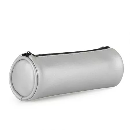 Karton P+P Pouzdro etue PU kulatá Metallic stříbrná 8-185. Studentské pouzdro na psací potřeby ve stříbrném provedení, materiál 100% polyuretan.