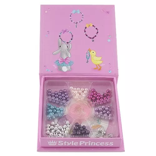 Kreativní dívčí sada v jedinečném designu oblíbené kolekce My Style Princess určená na výrobu vlastních náramků z korálků. Uložena v praktické krabičce vyrobené z pevného kartonu, kterou lze využít i jako šperkovnici! Tato úžasná sada nabízí nepřeberné množství kombinací náramků. Nejmenší dívky, které mají rády svůj vlastní styl a rády navrhují dle vlastní fantazie, se s touto hračkou vyřádí. Tuto sadu si zamilujete! Balení obsahuje: růžovou PVC sňůrku, 7 různých barev korálků a pět stříbrných přívěsků. Nevhodné pro dívky mladší 3 let.