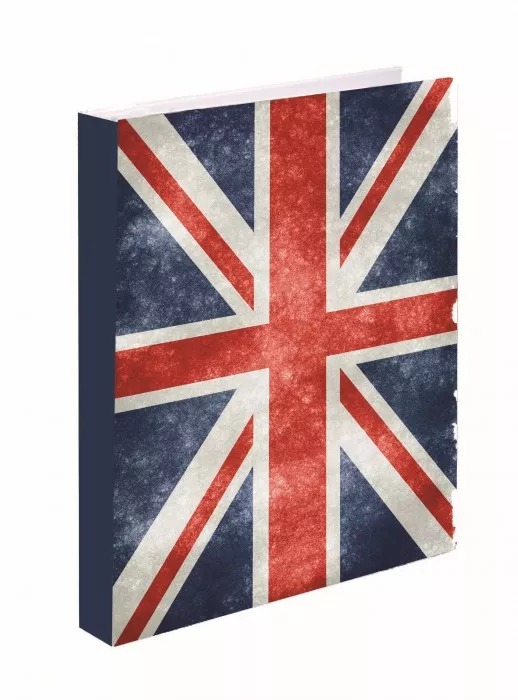 Kroužkový karisblok A5 vlajka UK - různé formáty. Karisblok se 4 kroužkovou mechanikou a s náplní 100 linkovaných listů. Na bloku je použit měkký PVC plast. Módní design.