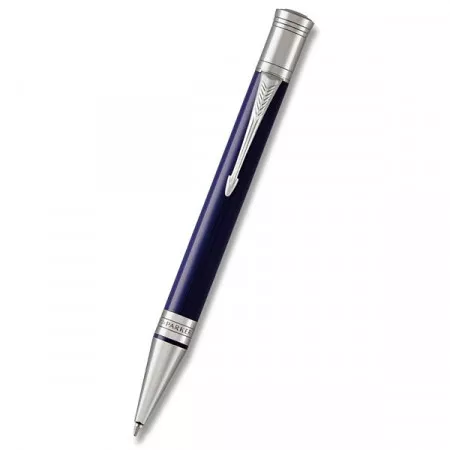 Kuličková tužka Parker Duofold Classic Blue & Black CT. Tělo z houževnaté, temně modré pryskyřice. V kombinaci s doplňky pokovenými palladiem. Včetně individuálního sériového čísla.