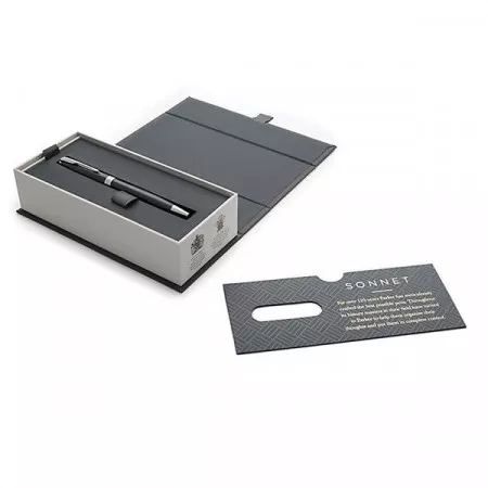 Kuličková tužka Parker Sonnet Black CT. Černě lakované tělo. V kombinaci s doplňky pokovenými palladiem.