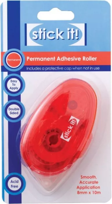 Permanentní lepidlo snadno nanášíte přiložením špičky rolleru v úhlu 45 stupňů. Roller obsahuje praktické ochranné víčko na špičku. Pracujte na rovné podložce. Neobsahuje kyselinu. Výborné na scrapbooking a výrobu kartiček a přání (card making). Šířka lepicí stopy 8mm, délka náplně 10m.